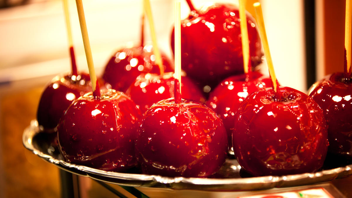 Toffee Apples. Characteristically sold in fairs, these apples (preferably of the Granny Smith variety) are coated with hard, brittle-like toffee emanating from heat-treated sugar syrup. The shell is admittedly hard and falls off when it cracks, making this aesthetically pleasing delicacy rather a challenge to bite into!
